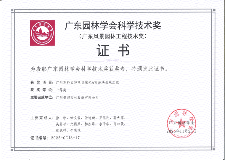历经二十多年的行业深耕与积淀,我司已是园林行业极具影响力企业之一,屡次荣获行业协会学会及政府机构颁发的项目奖项。至今,拥有项目奖项逾400项,其中,国家级及以上奖项135项,省市级奖项逾260项。