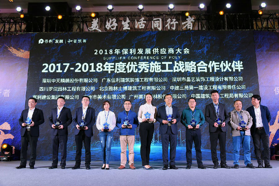 会上,我司凭借对景观设计品质与施工质量的高标准要求,对双方合约的诚信履行等诸多方面的突出表现,在众多同行战略供应商中脱颖而出,荣膺保利发展”2017-2018年度优秀施工战略合作伙伴”及”2017-2018年度园林设计类综合奖”两项大奖。